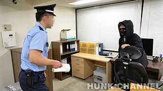 深夜のビルで警備中の武生が見回りしていると、なにやら泥棒らしき不審者が。取り押さえるも、男はポケットから時計を取り出しFREEZE!!一安心した男は改めて武生を見ると、男前でいい身体をしている…。金庫への興味が武生へと完全に移り、ズボンのチャックを下ろしてチンポをしゃぶり出す。逞しい巨根に夢中で吸いつきシャツをはだけさせると、自分を抑えつけていた警棒を奪い乳首ドリルする。無抵抗な唇とねっとりキスをし、警棒でアナルを穿る。はち切れんばかりに勃起した男は、チンポを充てがい容赦無く突き挿れる。武生の肉厚な尻は男の生チンポをどっしりと受け止めるが、男の気まぐれでFREEZE解除されて、奥から込み上げる刺激に呻き鳴く。ケツ穴がぐちょぐちょになる程、体位さまざまに掘り続けられ、満足した男は絶頂射精。顔面へ身体へ濃ザーメンをぶっかけられる。そして、そのまま夜は明け…。(FREEZE9)