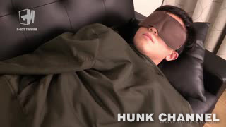 最初は起こさないよう軽く触ってみたところ、反応が無かったので乳首をいじったりなめたり。そして、ハーフパンツを脱がせると直立不動の勃起陰茎が!陸上部員は気づいているのかいないのか、ゴーグルマンの暴走はさらにエスカレート。どうやら、フェラの気持ち良さで目覚めたようで、そのまま快楽に身をまかせアイマスクをつけたままキスやローション責めを堪能し、しごかれ発射で休憩終了。 ※本編にてモデルはアイマスクを着用し、顔出ししておりません。