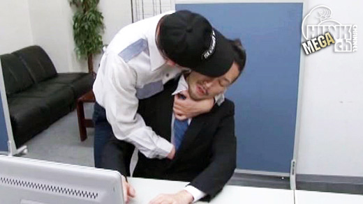 | 若いイケメンリーマンのベストファックシーンを2編収録。まずはDVD「社内淫乱ドクター」から。体調を崩し社内の診療所のベッドで休んでいるノンケの営業マンのもとに、同僚の若いリーマンが見舞いに。寝ているのをいいことに、モーションをかけ引き締まった肉体を触りまくる。そして、シャツを脱がせ、フェラまでしてしまう。ノンケのリーマンのほうも、同僚の細マッチョな肉体に興奮し、やはりでかまらをフェラする。最後は誰も居ない診療所に中で、ノンケリーマンがアナルをガンガンに掘られてしまう。2編目はDVD「純朴リーマンに魔の手が…」より今風のイケメンリーマンが登場。残業中に警備員に襲われる若いリーマン。最初は抵抗するものの、男らしい警備員に乳首を攻められ体が反応してしまう。そして、デスクの上で警備員のデカマラがゆっくりとアナルに挿入され、その腰使いが徐々に速くなっていく。ハンサムなリーマンはスーツを着たままで、色々な体位でバックを犯され、最後は快感に歓喜の表情に変わっていく。 | | | |
