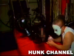【エジキ】変態ラバースーツフェチ野郎が二人のタチに責められフルボッキ!!!