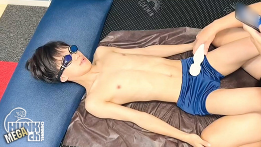 いつも目隠し出演ですが、今回は昭和感満載のスクール水着を履いて、ゴーグル着用での登場です!過去作より、さらにかわいいりん君の雰囲気をお楽しみいただけるはずです!電マ大好きりん君。水着が濡れちゃうくらい喘いでよがります!生チンポで掘られてびんびんの大きなチンポから大量の精子を出してくれますよ(^_-)-☆